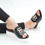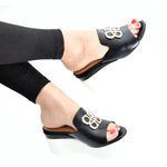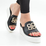 Bequeme, leichte Keilabsatz Pantoletten in Schwarz/Weiß mit Goldene Details!!!