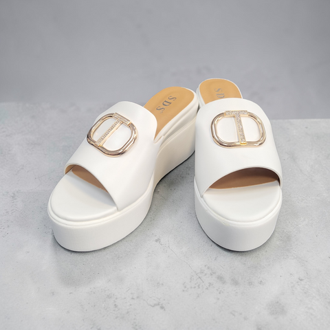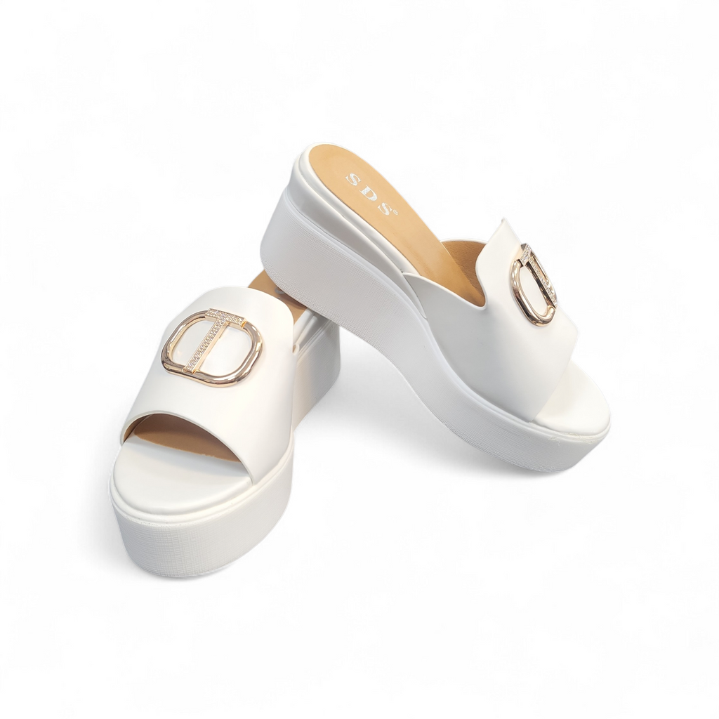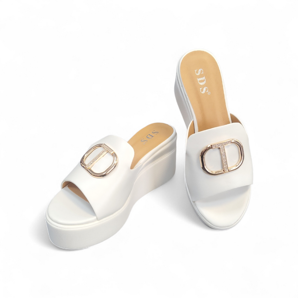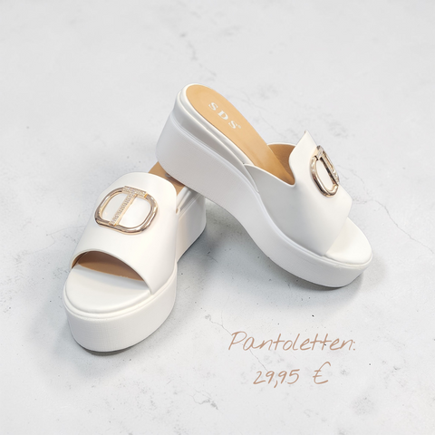 Keilabsatz Pantoletten Weiß" Gold-Details"