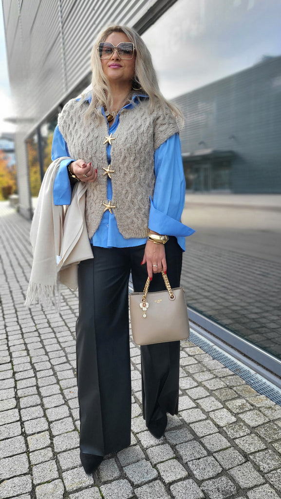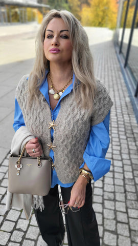 Goldene Details an der Strickweste: